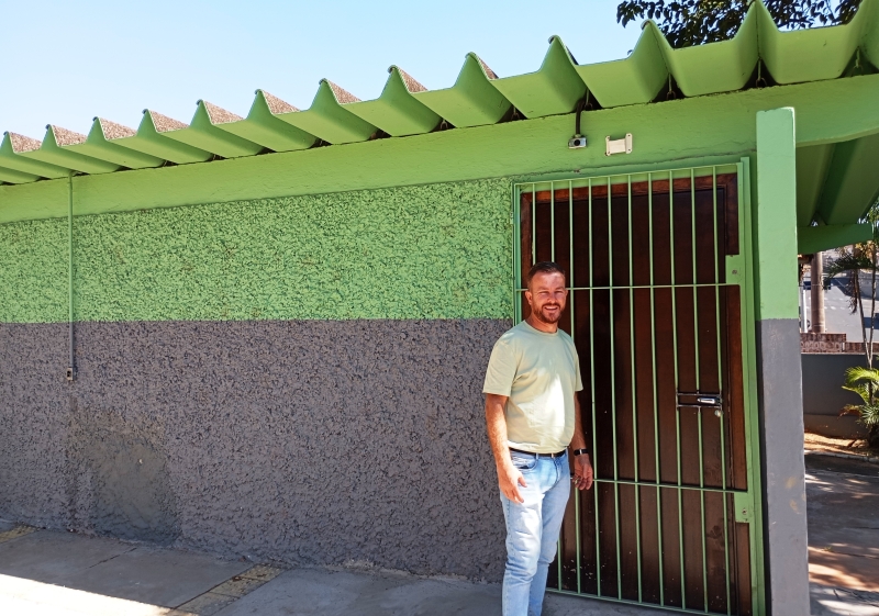 Foguinho mostra portas novas dos vestiários, com fechaduras de trava no Estádio “Horácio Alves Cunha”, no Jardim Bela Vista. (Futebol Bauru/Arquivo)